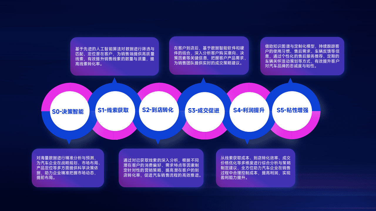 通过拓宽潜在客户来源、、、优化线索分配并提高到店转化率,,,,以增强销售效率。。同时,,,利用线索数据不断优化分析模型,,有效提升转化率,,扩大营销影响力。。